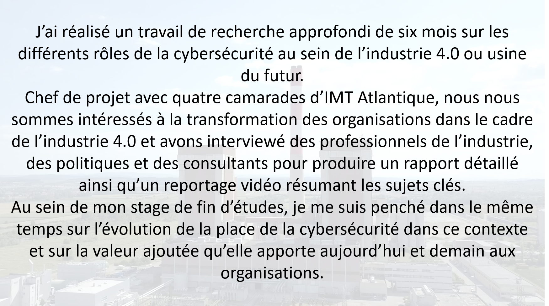 - Etudier les risques cyber dans l'industrie 4.0 (usine du futur)